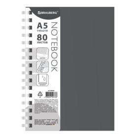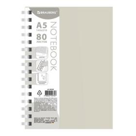 Тетрадь обложка пластик, А5 80 л., гребень мягкий, вырубка для ручки, клетка, BRAUBERG, серый, 405377