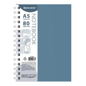 Тетрадь обложка пластик, А5, 80 л., спираль пластик, клетка, BRAUBERG "Metropolis", синий, 404744