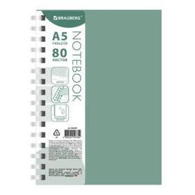 Тетрадь обложка пластик, А5 80 л., гребень мягкий, вырубка для ручки, клетка, BRAUBERG, светло-зеленый, 405378