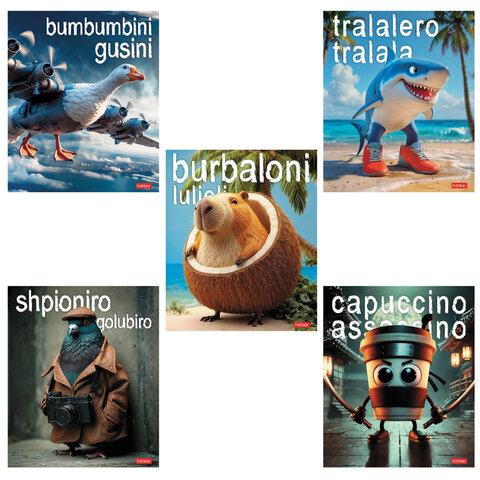 Тетрадь А5 48 л., HATBER, скоба, клетка, обложка картон, Brain rot content (микс в спайке), 093131, 48Т5В1