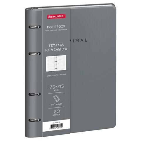 Тетрадь на кольцах А5 180х220, 120л, под кожу, BRAUBERG VISTA, Minimal серый, 405211