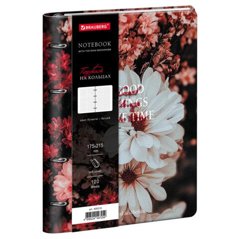 Тетрадь на кольцах БОЛЬШАЯ А4, 215х305 мм, 100 л., твердый картон, клетка, BRAUBERG, "Цветы", 405412
