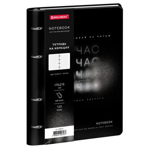 Тетрадь на кольцах БОЛЬШАЯ А4, 215х305 мм, 100 л., твердый картон, клетка, BRAUBERG, "Minimal black", 405408