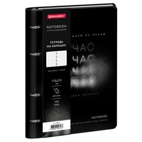 Тетрадь на кольцах А5 180х220, 120л, под кожу, BRAUBERG VISTA, Minimal черный, 405212