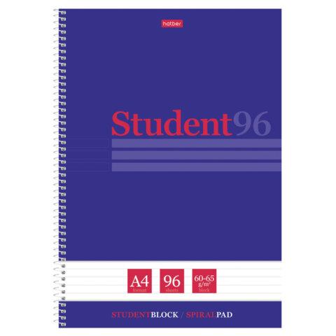 Тетрадь А4 96 л., HATBER, спираль, линия, матовая ламинация, тиснение, "Студенту_Синяя", 082670, 96Т4лтВ2сп29868