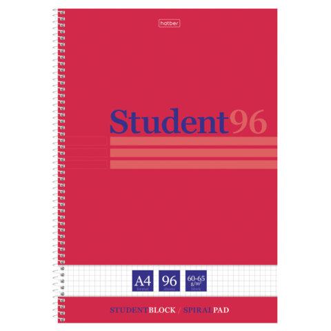 Тетрадь А4 96 л., HATBER, спираль, клетка, матовая ламинация, тиснение, "Студенту_Синяя", 081327, 96Т4лтВ1сп29868
