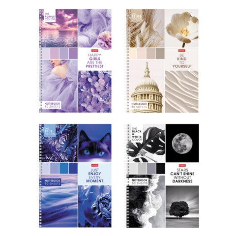 Тетрадь А4, 80 л., HATBER, гребень, линия, обложка картон, "Ассорти" (микс в спайке), 066144, 80Т4В2гр