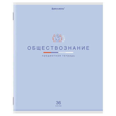 Тетрадь предметная "МИР ЗНАНИЙ", 36 л., обложка мелованная бумага, ОБЩЕСТВОЗНАНИЕ, клетка, BRAUBERG, 404594