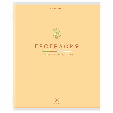 Тетрадь предметная "МИР ЗНАНИЙ" 36 л., обложка мелованная бумага, ГЕОГРАФИЯ, клетка, BRAUBERG, 404597