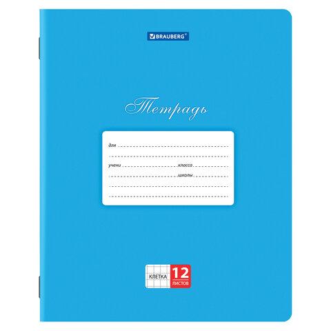 Тетради 12 л. КОМПЛЕКТ 10 шт. BRAUBERG КЛАССИКА, клетка, обложка картон, СИНЯЯ, 106651