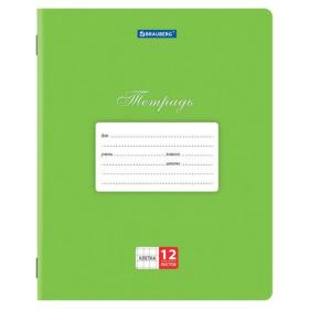 Тетради 12 л. КОМПЛЕКТ 10 шт. BRAUBERG КЛАССИКА, клетка, обложка картон, ЗЕЛЕНАЯ, 106650