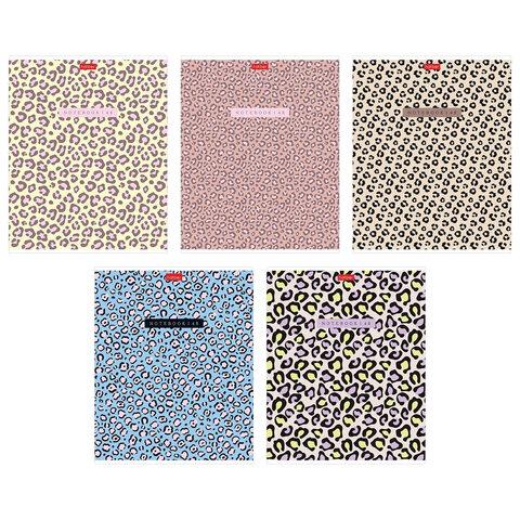 Тетрадь обложка пластик, А5 48 л., скоба, клетка, HATBER, "LEO-принт" (микс в спайке), 092368, 48Т5В1пл