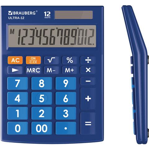 Калькулятор настольный BRAUBERG ULTRA-12-BU (192x143 мм), 12 разрядов, двойное питание, СИНИЙ, 250492