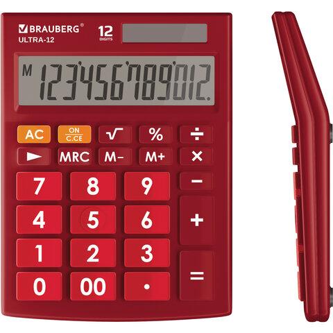 Калькулятор настольный BRAUBERG ULTRA-12-WR (192x143 мм), 12 разрядов, двойное питание, БОРДОВЫЙ, 250494