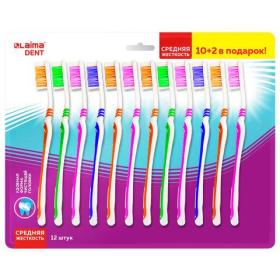 Зубная щетка средней жесткости, КОМПЛЕКТ 12 шт. (10 + 2 в подарок), LAIMA DENT, 609689
