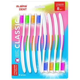 Зубная щетка средней жесткости, КОМПЛЕКТ 8 шт., LAIMA DENT "CLASSIC", 609314