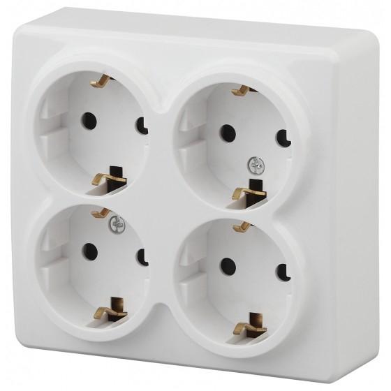 Эра Б0020709 11-2211-01 Розетка 4 х 2P+E Schuko со шторками, 16АХ-250В, ОУ, Эра Эксперт, белый