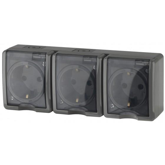 Эра Б0020721 11-2405-03 Розетка 3 х 2P+E IP54, 16АХ-250В, ОУ, Эра Эксперт, серый
