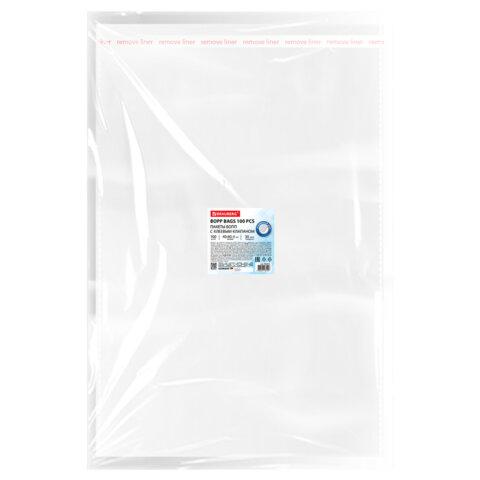 Пакеты БОПП с клеевым клапаном, КОМПЛЕКТ 100 штук, 40х50 + 4 см, 53 мкм, с усиленным швом, BRAUBERG, 700419