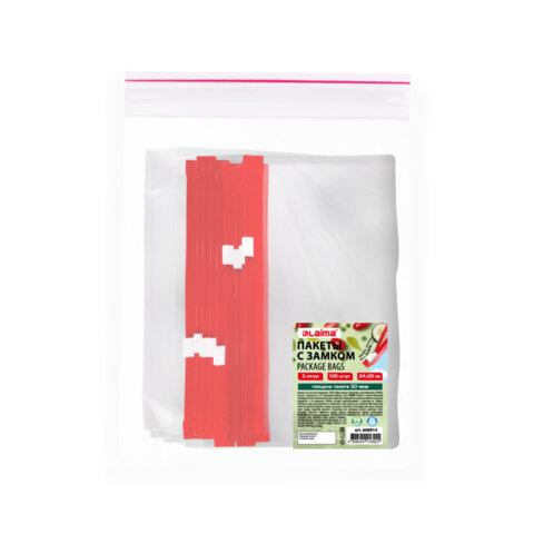 Пакеты для заморозки продуктов, 3 л, КОМПЛЕКТ 100 шт., с замком-застежкой (слайдер), LAIMA