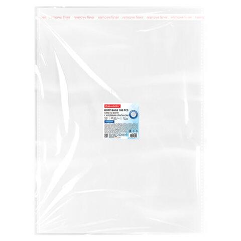 Пакеты БОПП с клеевым клапаном, КОМПЛЕКТ 100 штук, 40х60 + 4 см, 30 мкм, с усиленным швом, BRAUBERG, 700412