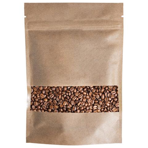 Пакеты дой-пак с замком ZIP LOCK, крафт с окном 60 мм, 200х300 + 50 мм, КОМПЛЕКТ 100 штук, 150 мкм, BRAUBERG, 700694