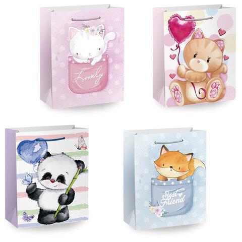 Пакет подарочный (1 штука) 26х13х32 см (L), "Lovely Animals", ассорти, глиттер, ЗОЛОТАЯ СКАЗКА, 700816