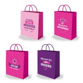 Пакет подарочный (1 штука) 26х13х32 см (L), "For Girl", ассорти, крафт, ЗОЛОТАЯ СКАЗКА, 700815