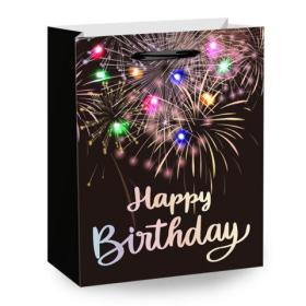 Пакет подарочный (1 штука) 26х13х32 см (L),"Happy B-day", глиттер, ЗОЛОТАЯ СКАЗКА, 700839