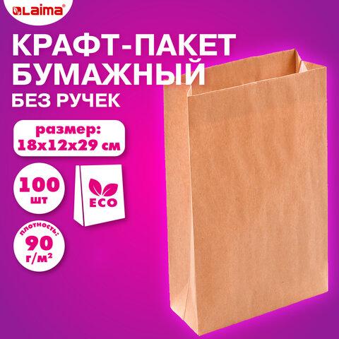 Крафт-пакет бумажный 18х12х29 см, КОМПЛЕКТ 100 шт., плотность 90 г / м2, LAIMA ECO CRAFT, 609683