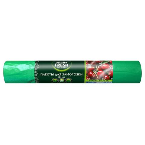 Пакеты фасовочные ДЛЯ ЗАМОРОЗКИ 25х32 см, КОМПЛЕКТ 30 шт., 20 мкм, рулон, зеленые, MASTER FRESH