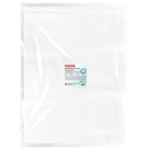 Пакеты БОПП с клеевым клапаном КОМПЛЕКТ 100 штук, 40х50+4 см, 30 мкм с усиленным швом, BRAUBERG, 700411
