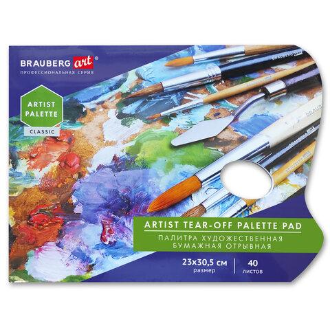 Палитра для красок бумажная 40 отрывных листов 23х30,5 см, BRAUBERG ART CLASSIC, 192234
