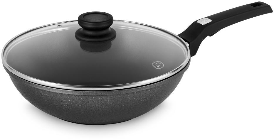 Сковорода ВОК (WOK) Rondell Craft RDA-1893 круглая 28см покрытие: TriTitan ручка несъемная (с крышкой) черный
