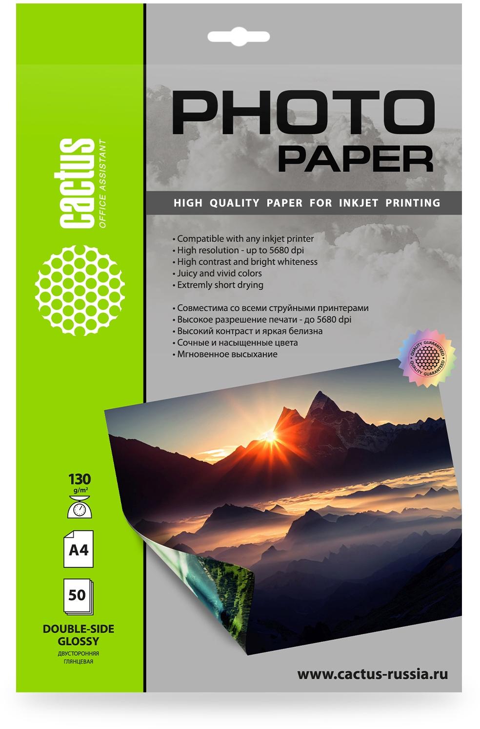 Фотобумага Cactus CS-GA413050DS A4 / 130г / м2 / 50л. / белый глянцевое / глянцевое для струйной печати