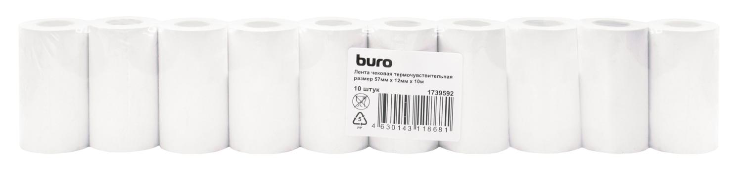 Лента чековая Buro 57мм 10м 12mm термобумага (упак.10шт)