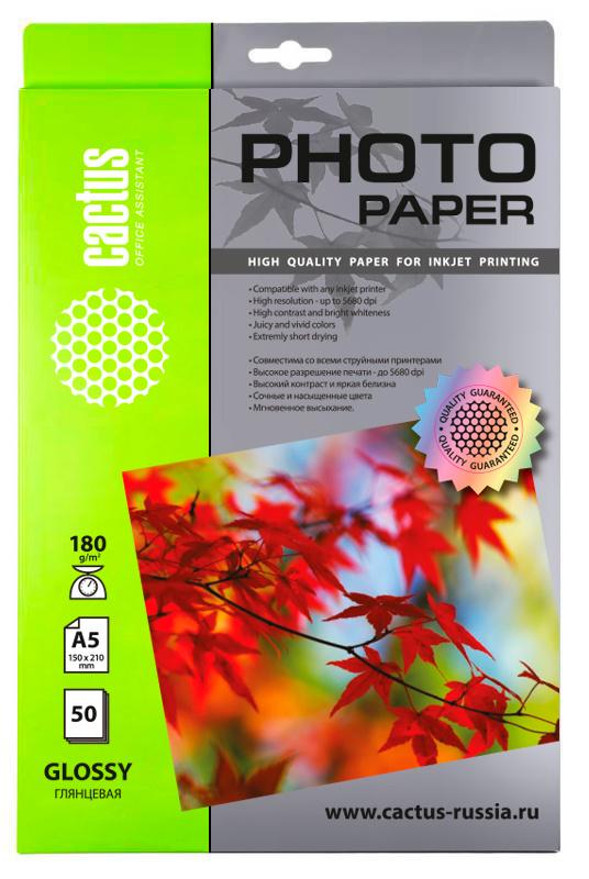 Фотобумага Cactus CS-GA518050 A5 / 180г / м2 / 50л. / белый глянцевое для струйной печати
