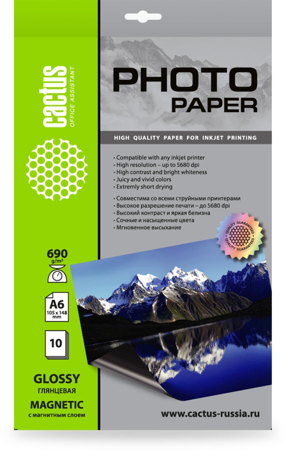 Фотобумага Cactus CS-MGA669010 A6 / 690г / м2 / 10л. / белый глянцевое / магнитный слой 300 для струйной печат