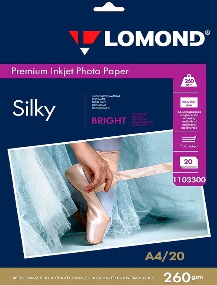 Фотобумага ПРЕМИУМ для стр.печати LOMOND 10х15см 260 г / м2 односторонняя Silky Bright 20л