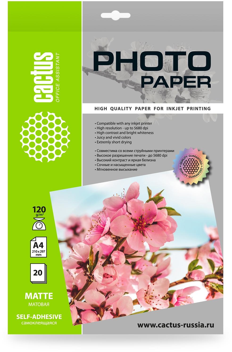 Фотобумага Cactus CS-MSA412020 A4 / 120г / м2 / 20л. / белый матовое самоклей. для струйной печати
