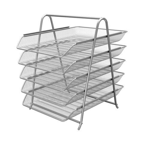 Лоток горизонтальный для бумаг BRAUBERG "Germanium", 5 секций, 370х355х295 мм, металл, серебро, 237972