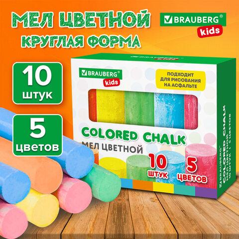 Мел цветной круглый мягкий 10 штук, 5 цветов, BRAUBERG, картонная упаковка, европодвес, 272767