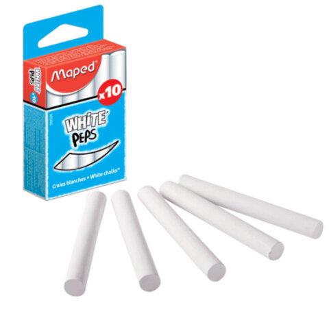 Мелки MAPED (Франция), набор 10 шт., белые, круглые, специальная формула "без пыли", 593500