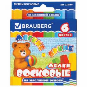Восковые мелки BRAUBERG, НАБОР 6 цветов, 222961