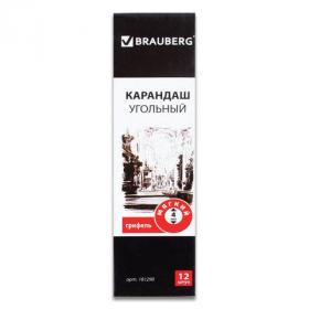 Карандаш (1 штука) угольный BRAUBERG ART CLASSIC, ТВЕРДЫЙ, круглый, корпус черный, заточенный, 181292