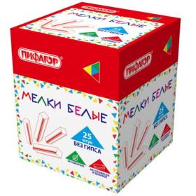 Мел белый БЕЗ ПРИМЕСЕЙ квадратный 25 штук, мягкое письмо, ПИФАГОР, картонная упаковка, 274122