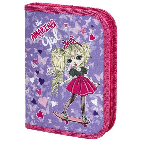 Пенал ПИФАГОР, 1 отделение 1 откидная планка, полиэстер, 19х13 см, "Amazing Girl", 271518