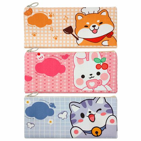 Пенал-конверт ПИФАГОР, 1 отделение, ПВХ, ассорти "Pets", 22x10 см, 273824
