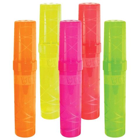 Пенал-тубус ПИФАГОР пластиковый, ассорти, 5 цветов, 19,5х4,5 см, 271582