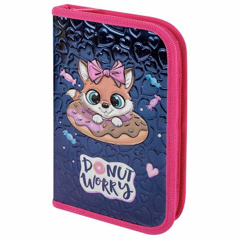 Пенал ЮНЛАНДИЯ, 1 отделение, металлизированный картон, конгрев, 19х11 см, "Donut worry", 272281